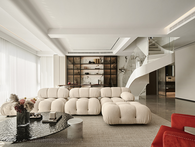 秉持删繁就简理念,以色彩的高度凝练与造型的极度简洁,重新排序空间、人与物的关系。在这里,每一处线条都简洁利落,色彩搭配和谐统一,营造出极度舒适的氛围,让居者一入家门,便能抛却外界纷扰。